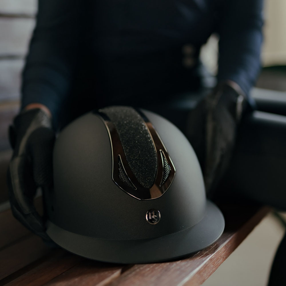HS Victory Glimmer from Hansbo Sport is an incredibly affordable riding helmet that ensures both comfort and functionality, while adding that extra touch to your look. The matte black finish is combined with a wide sun visor, chrome details, and a shimmering glitter panel on top.