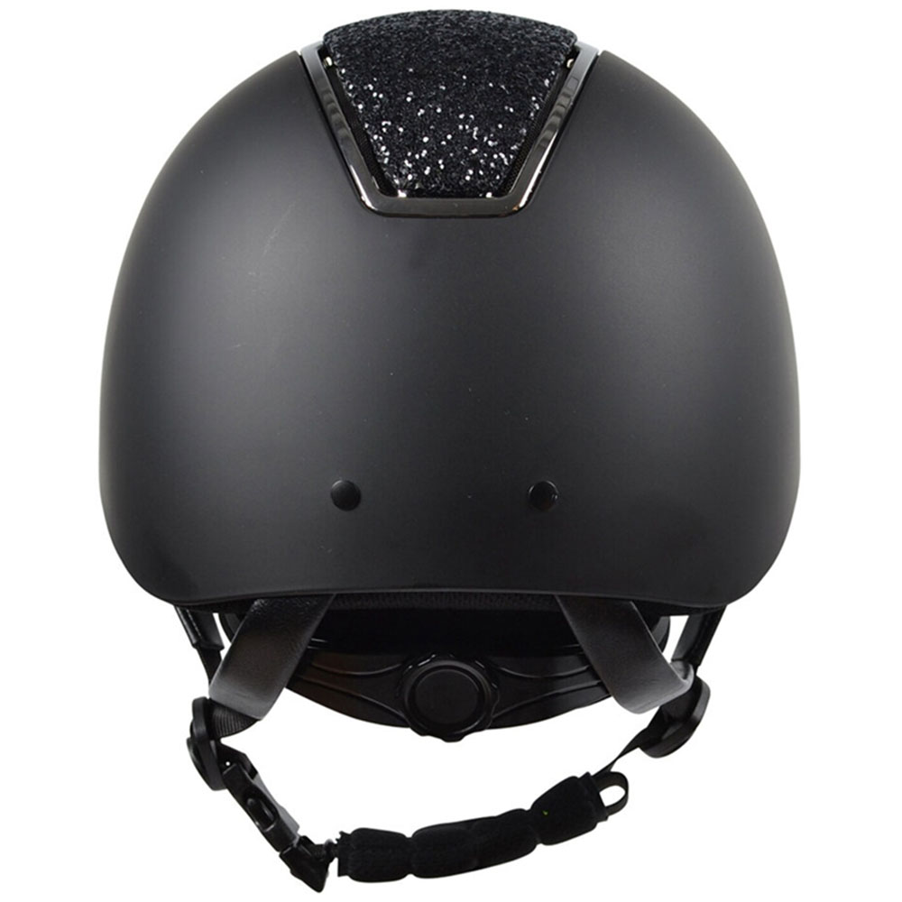 The Vision Silhouette riding helmet from Hansbo Sport combines modern safety with an elegant design and sparkling details. The wide visor provides effective sun protection, while six strategically placed ventilation openings contribute to airflow and comfort throughout your ride. The glittering panel adds an exclusive touch that instantly elevates your outfit.