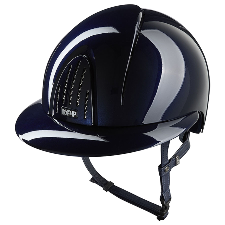 This navy edition of the KEP Smart Nova Metal Polish Polo, with a high-gloss, glossy finish and a wide sun peak, is a well-thought-out and carefully developed riding helmet, designed to offer a combination of reliable protection and optimal comfort. The helmet’s outer ABS shell is combined with an inner EPS layer that effectively absorbs impacts in the event of a fall or blow. The extended rear follows the shape of the neck and provides extra protection over a sensitive area - without in any way limiting freedom of movement.