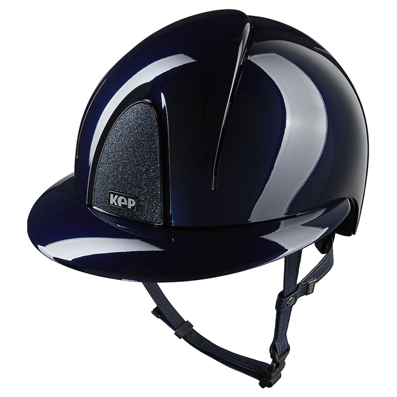 This navy edition of the KEP Smart Nova Metal Polish Polo Star, with a high-gloss, glossy finish, sparkling glitter details and a wide sun peak, is a well-thought-out and carefully developed riding helmet, designed to offer a combination of reliable protection and optimal comfort. The helmet’s outer ABS shell is combined with an inner EPS layer that effectively absorbs impacts in the event of a fall or blow. The extended rear follows the shape of the neck and provides extra protection over a sensitive area - without in any way limiting freedom of movement.