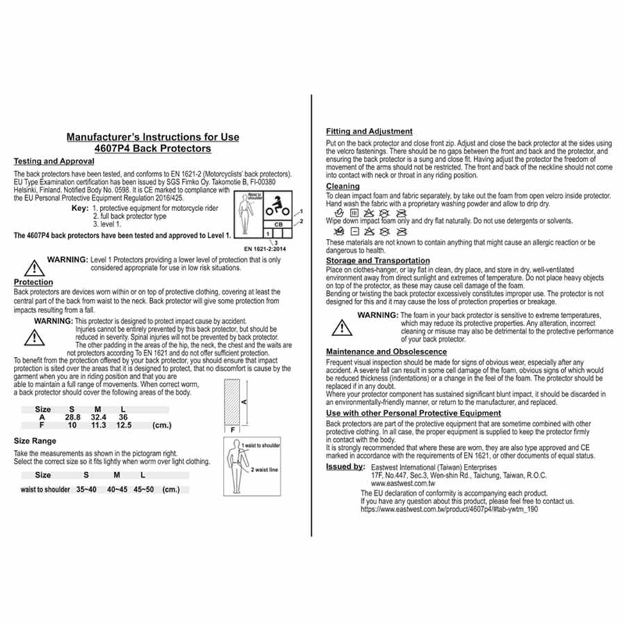 - Certified to EN 1621-2, level 2