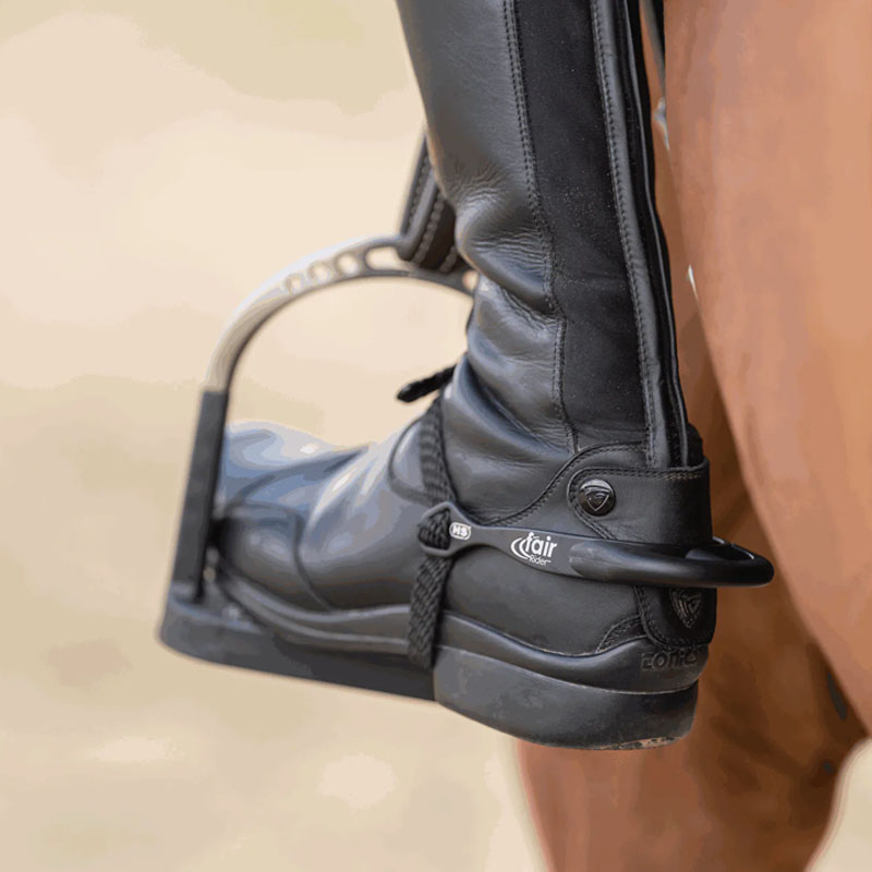 The fairRider Thin Rounded spurs from Sprenger are designed with a thin, rounded and curved plastic part that provides a broader contact surface compared to traditional spurs. This design distributes pressure more evenly along the horse’s side, making them a less pinpointed alternative.