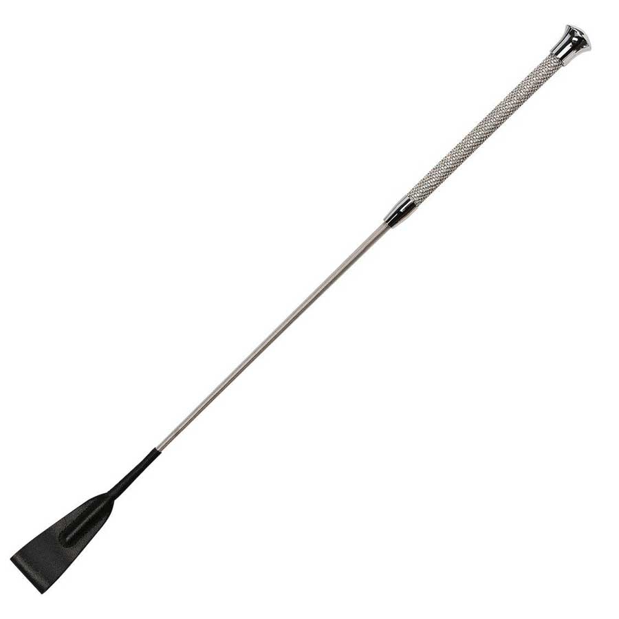 Exclusive riding crop measuring 65 cm in length, making it ideal for jumping or as an all-around crop. Core made of fiberglass, making it both flexible and durable. Comes with a silver knob and a black leather flap at the bottom.