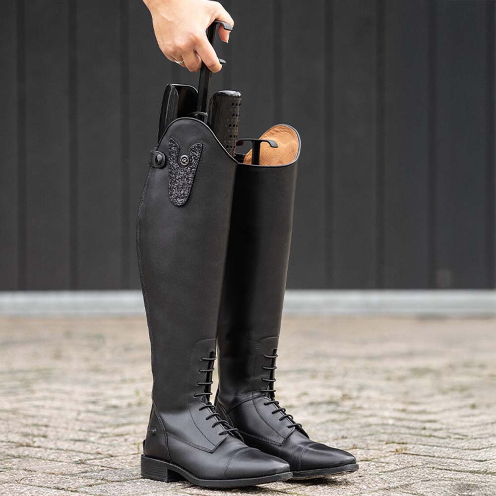 Keep your riding boots in perfect shape with this boot stretcher. It helps prevent wrinkles and folds in the leather, ensuring your boots look good for longer. By using a boot stretcher, you can also extend the lifespan of both zippers and boots. A practical solution for any rider looking to take care of their gear.