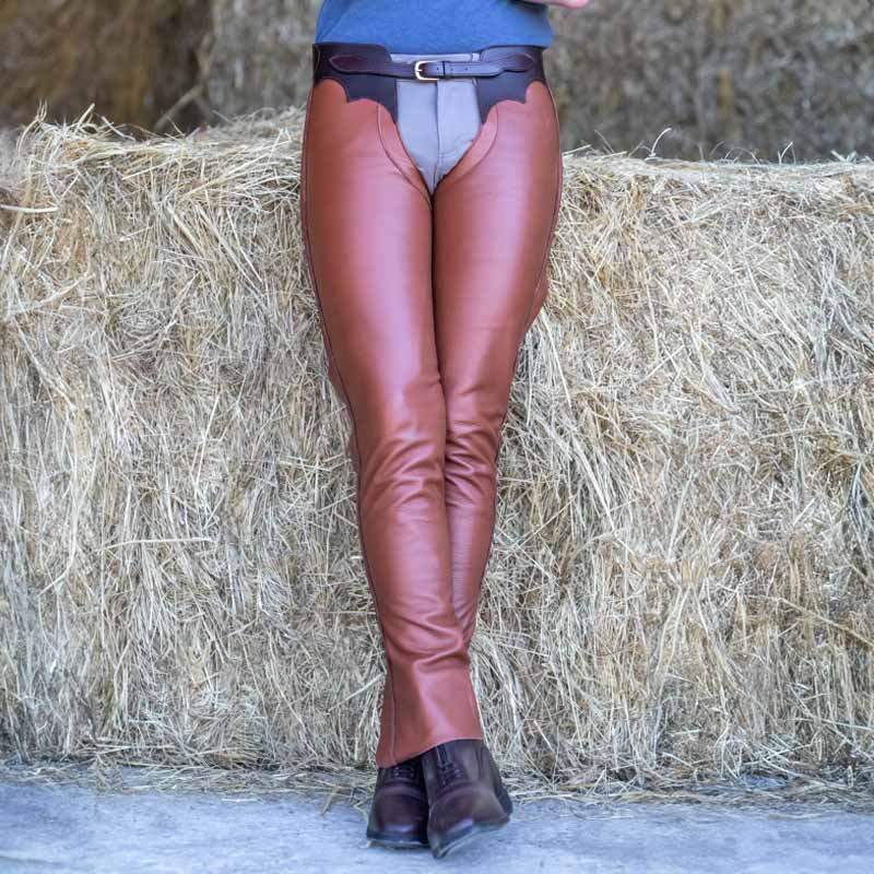 Long leather chaps are an excellent choice for riders looking for both style and functionality. These chaps are made from soft full grain leather with a thickness of 1.3 mm, providing a good balance between durability and comfort. The side-mounted nylon YKK zipper makes it easy to put on and take off the chaps, while the adjustable low waist belt in brown or black leather ensures a secure fit. You can choose to have them with or without fringes, giving you the option to customize your look. Additionally, there are several color options available for the leather base, including black, brown, cognac, navy blue, straw, burgundy, and red. These chaps are made in Belgium in the Dy'on workshops, ensuring high quality and careful craftsmanship.