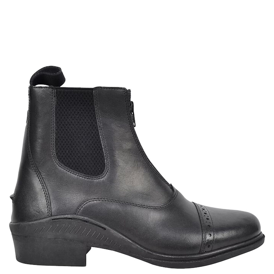 Jodhpur boots in a classic model from Hansbo Sport, designed with a front zipper, elastic sides and decorative stitching. The boots also feature a reinforced, shock-absorbing rubber outsole and spur rests on the heels.