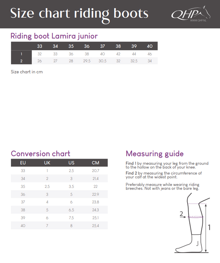 QHP's Lamira dressage boots, for children and juniors, are designed for riders seeking a sleek dressage boot with both comfort and visual elegance. The patent surface combined with sparkling details provides a luxurious look, while the boot is functionally constructed to ensure high comfort.