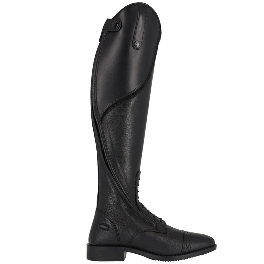The angled zipper on the outside prevents the boots from rubbing against the saddle and increases durability over time. The elastic panel along the back adapts to the shape of the leg, and the elastic lacing at the front provides increased freedom of movement for the ankle.
