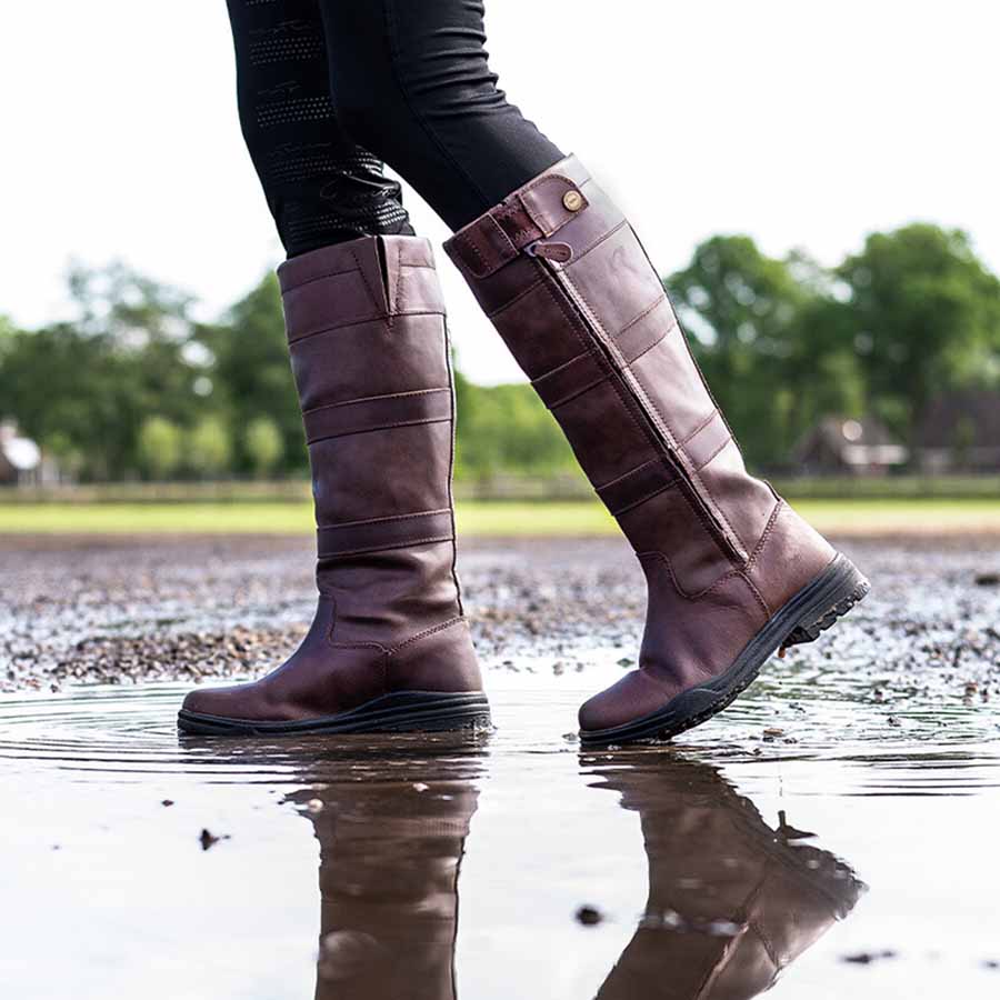 The Daan winter riding boots are tough, waterproof outdoor boots made of leather. Featuring a side zipper, they are easy to put on, which is a great advantage when you're in a hurry. The lining keeps your feet warm during cold winter days, and the rubber sole provides good grip on various surfaces. These boots are perfect for riding and other outdoor activities in winter.