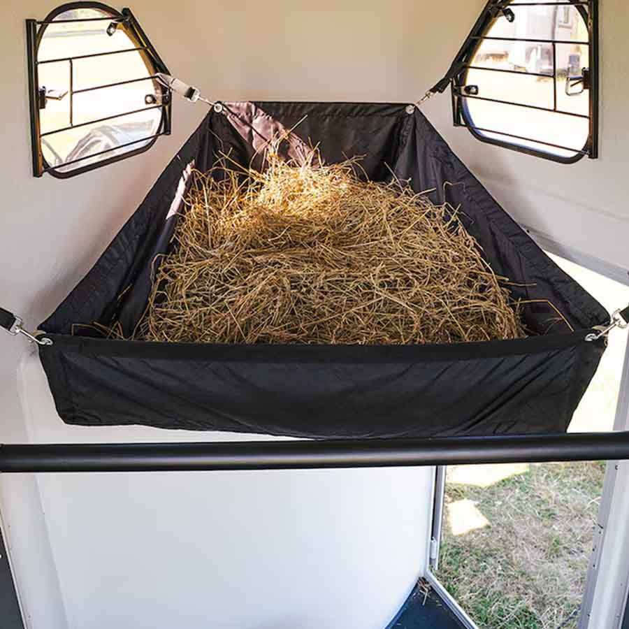 Made from durable polyester, the hay bag is both long-lasting and easy to clean. Hanging hooks are included.