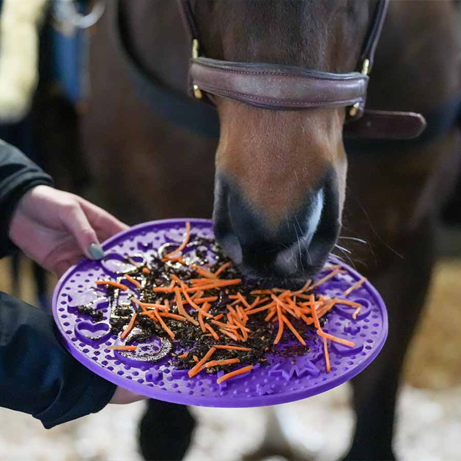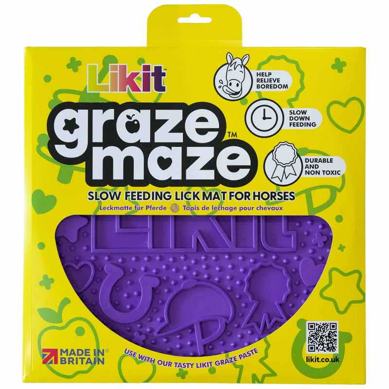 LikIt Graze Maze, which comes in a stylish purple color, is an innovative slow feed mat that, when combined with LikIt Graze Paste or other horse treats, provides your horse with a tasty and entertaining activity that effectively combats both boredom and restlessness - how clever?
