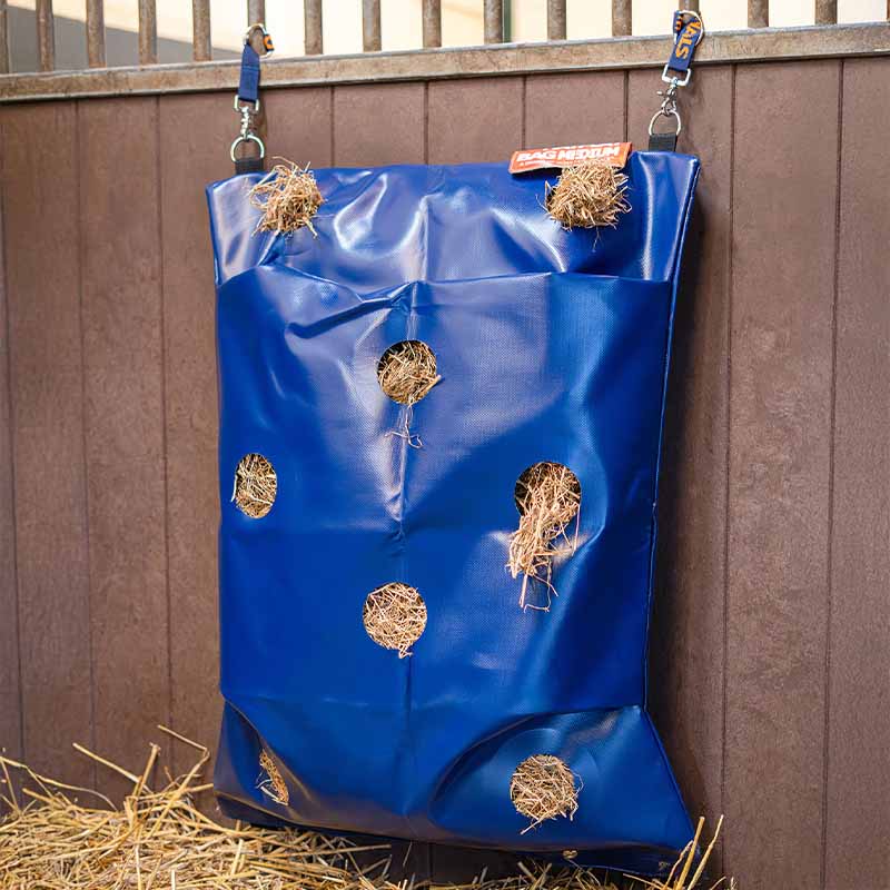 HorseOriginals durable HayPlay Bag Buttonbag Belly Medium is an innovative and easy-to-use slow feed solution that safely and playfully reduces boredom stress, prolongs eating time, and keeps your horse occupied all day!
