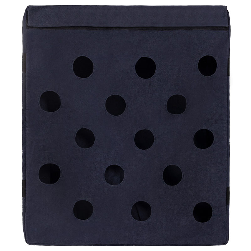The slow feeder is water-repellent and easy to open and close with a hook-and-loop fastener. The holes have a diameter of 8 cm and the volume is 80 litres.