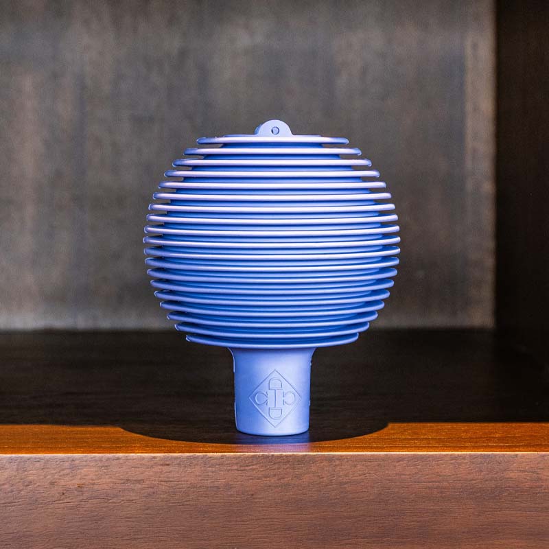 The ball is easily slipped over the metal buckle of the lead rope and stays in place thanks to its shape. The ridged surface also helps keep it secure and absorb motion more effectively.