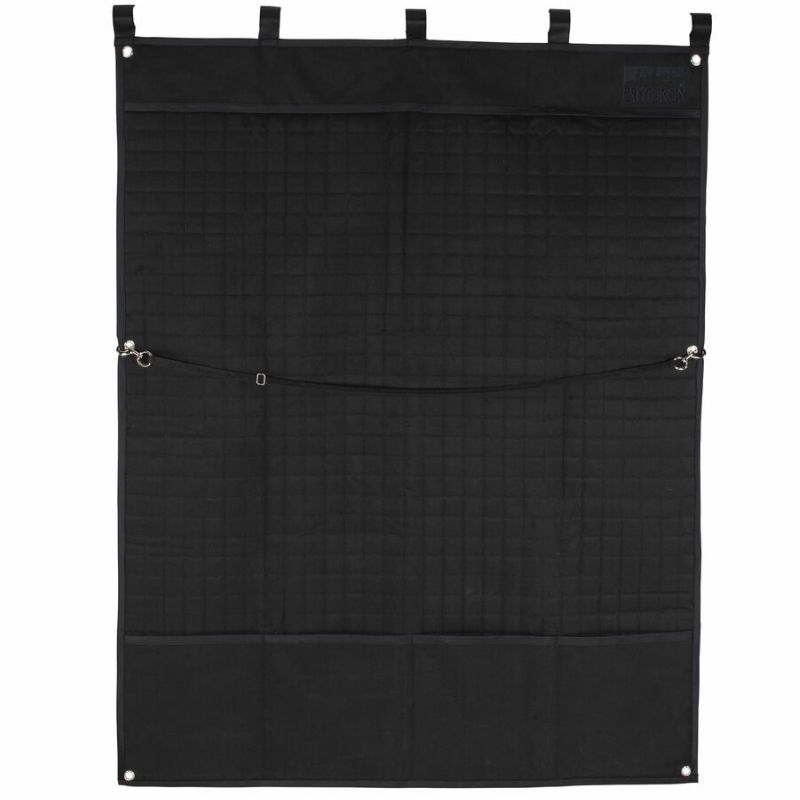 The Eskadron Stable Curtain Quilt Long in black is a sturdy and practical addition to your horse's stable. It features a classic quilted design with a sleek trim, providing a stylish look. Adjustable Velcro fastenings ensure flexible and secure hanging, while eyelets in the corners and along the sides offer alternative mounting options. Handy pockets provide extra storage space, and hidden hooks at the top allow for easy hanging of bridles and other accessories. A central strap offers additional hanging possibilities, such as for saddle pads. The stable curtain measures 190 x 150 cm.