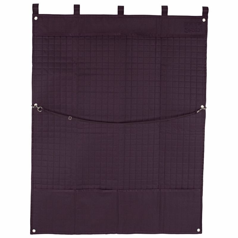 The Eskadron Stable Curtain Quilt Long in Bordeaux is a sturdy and practical addition to your stable. Featuring a classic quilted design with a sleek trim, it offers adjustable Velcro fastenings for flexible and secure hanging. Eyelets in the corners and along the sides provide alternative mounting options. Practical pockets offer extra storage space, while hidden hooks at the top allow for hanging bridles and other items. A central strap provides additional hanging possibilities, such as for saddle pads. The curtain measures 190 x 150 cm.