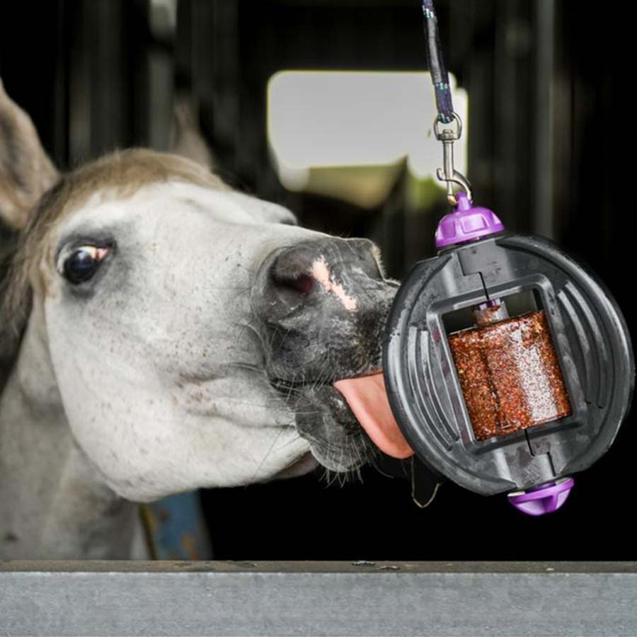 Bizzy Lick is a tasty salt lick from Bizzy Horse, specifically designed for use with the Bizzy Ball salt lick holder. The Bizzy Ball is a 3-in-1 enrichment toy that, aside from being suspended from the ceiling, can be easily attached to the wall or placed directly on the ground - ideal for easily bored horses in need of additional stimulation and activity in their daily routine!